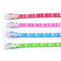This upscale designer's dog collar is made with quality in mind. The all new material does not retain dirt, absorb moisture or harbor bacteria. It is waterproof and so easy to clean - just wipe with damp cloth and you are ready for the next adventure, no matter how stinky - Perfect for active pets! Handcrafted and stitching throughout with precision for sturdiness. The fantastic Glow-in-the-Dark feature adds fun to use. Available in 6 Sizes (XXS/Cat, XS, S, M, L, XL) for all breeds and sizes and a rainbow of colors to ensure your active pet is always in style! ***Click on the "See larger images and other views" above for a more detailed sizing chart and measuring instructions. This listing is for style, color and size in the listing title*** Please note: Our innovative Glow-in-the-Dark collars need simply to be exposed to light to glow. The Glow-in-the-Dark feature is for novelty purpose only, not for nighttime safety use. For nighttime safety dog collars please see our "How's Your Dog LED Flashing Collars "