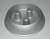 brake-fast dog food bowls patent pending design prevents your dog from bolting their food. The simple obstructions make dogs slow down to eat. Bowl will slide on floor (on purpose) to slow down eating. Helps reduce the risk of Gastric Dilatation-Volvulus (GDV or 'Bloat'). Slower eating makes an animal feel more full and reduces instances of re-eating. Veterinarian tested and recommended. Works with kibble or canned food. Elegant, no-tip shape. Durable, powder coated and safe! Holds 1.5 cups