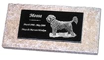 Solid granite top plaque permanently fixed to walnut colored bottom pavestone. Top stone 10x4x3/8 - Bottom stone 12x6x1-1/2 Includes your pet's photo & your words laser etched. A design proof will be emailed to you for approval before the marker is etched. You will have the opportunity to check for errors and make any changes before your pet's marker is made. Once your order is received an email will be sent with the necessary information for you to submit your text and photo. You will be able to choose from our selection of font types and decorative spacers. There is no limit to the number of words you can use for the inscription, but the more words used - the smaller the font. Feel free to include your own ideas & special requests. Send the best photo you have and I will edit it at no charge to produce the best etching possible for your marker. Mailed photos will be returned.